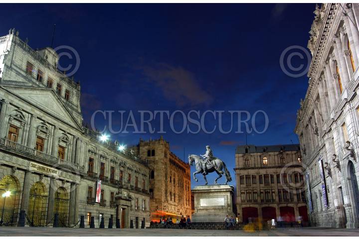 MEXICO D.F. 24SEPTIEMBRE2004.- Amanecer en la plaza Manuel Tolsa. Al centro la estatua de Carlos IV , mas conicida como ¨el caballito¨. FOTO: Germán Romero/CUARTOSCURO:COM