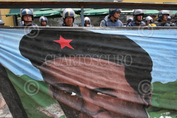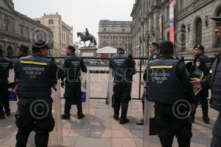 MÉXICO, D.F., 28MARZO2007.- Lucio vacia la plaza Tolsa, a donde algunos manifestantes seguian exigiendo no a las reformas del ISSTE. Mientras tanto, miembros del cuerpo de seguridad pública del D.F. siguen resguardando el Senado de la República. FOTO: EZEQUIEL TLAXCALA/ CUARTOSCURO.COM