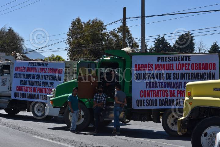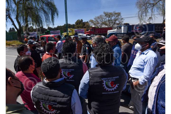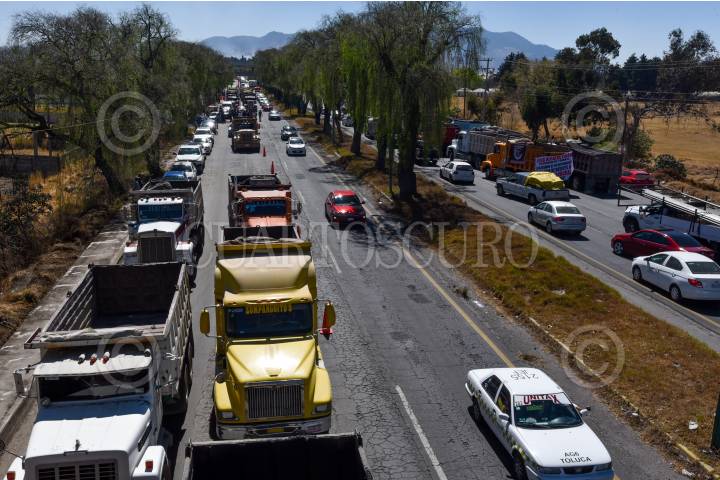 Transportistas integrantes de la Confederación de Organizaciones y Sindicatos Unidos de México bloquearon por segunda ocasión la carretera Toluca-Tenango exigiendo no se continúe violentando sus derechos laborales.