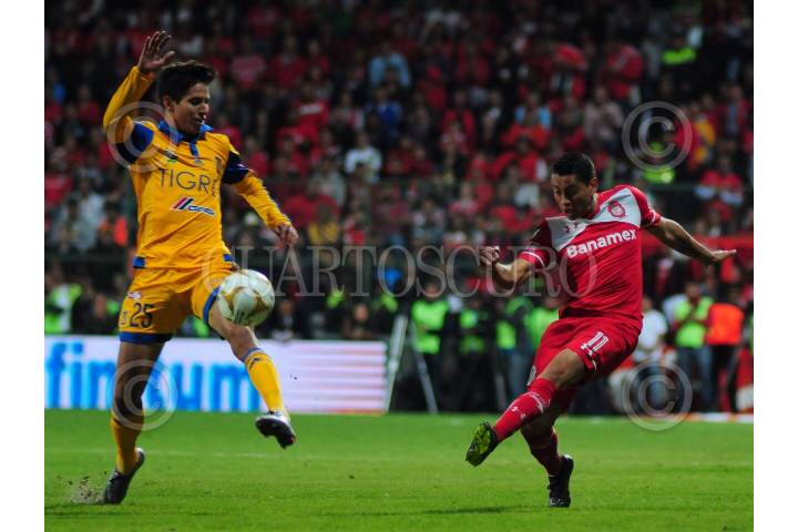 TOLUCA, EDOMEX, 06DICIEMBRE2015.- Partido semifinal de vuelta entre los Diablos Rojos del Toluca y los Tigres en el estadio Nemesio Diez. Los Tigres se ponen a la cabeza 2 goles a cero sobre los Diablos Rojos de Toluca. FOTO: DIEGO SIMÓN SÁNCHEZ /CUARTOSCURO.COM