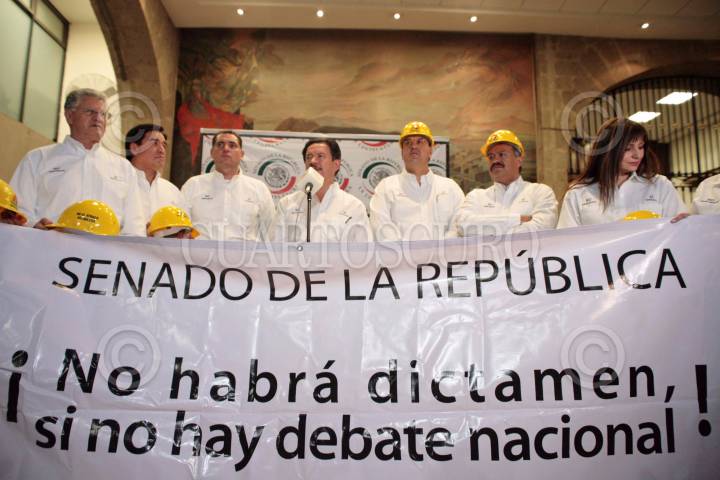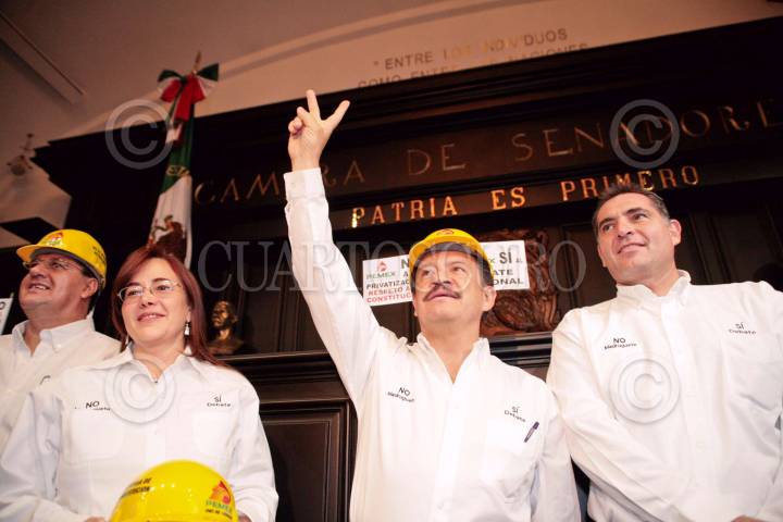 MÉXICO, D.F, 12ABRIL2008.- Esta tarde los senadores del Frente Amplio Progresista se manifestaron en el salón de sesiones de la Cámara de Senadores encabezados por el senador Carlos Navarrete, en donde al finalizar ofrecieron una conferencia de prensa. FOTO: ISRAEL VERA/CUARTOSCURO.COM