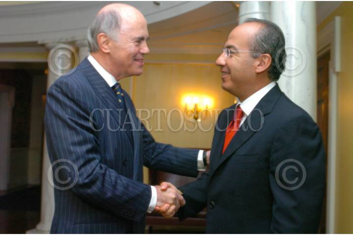 OTTAWA, CANADA, 20AGOSTO2007.- Felipe Calderón Hinojosa, Presidente de la República, saluda a Tom D`Aquino, presidente del Canadian Council of Chief Executives, durante el desayuno con empresarios en el Club Rideau. FOTO: XIMENA DE LA SERNA/CUARTOSCURO.COM