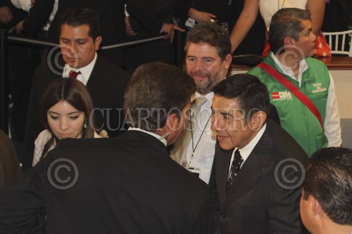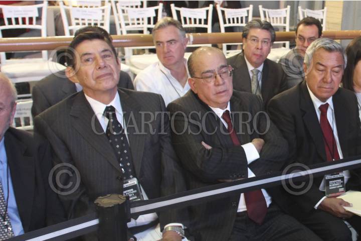 MÉXICO, D.F., 31JULIO2012.- Un juez mexicano ordenó el martes las aprehensiones del general de División del Estado Mayor, Tomás Ángeles Dauahare; del general de División, Ricardo Escorcia Vargas; y del general Roberto Dawe González, informó la Procuraduría General de la República (PGR). Las autoridades señalan la presunta responsabilidad de los militares, que “se encontraban sujetos a la medida cautelar de arraigo”, en el delito de delincuencia organizada con el propósito de cometer ilícitos contra la salud. En la imagen se aprecia a el General Angeles Dauahare (primero a la izquierda) y fue tomada el 9 de mayo de 2012 en un encuentro organizado por la Fundación Colosio en la ciudad de San Luis Potosí. FOTO: ARCHIVO /CUARTOSCURO.COM