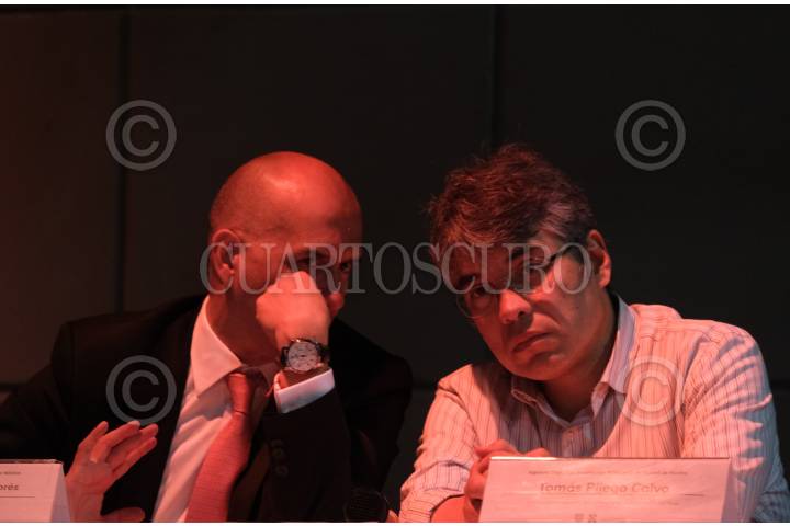 CIUDAD DE MÉXICO, 11NOVIEMBRE2019.- Salvador Guerrero Chiprés, consejero Presidente del Consejo Ciudadano de Seguridad Pública y Procuración de Justicia de la Ciudad, y Tomás Pliego Calvo, Coordinador del Gabinete de Seguridad Ciudadana y Procuración de Justicia de la capital durante la presentación de la Sistema de Denuncia Digital, el cual permitirá el trámite de la presentación de denuncias o actas especiales. Estará disponible a partir del 6 d e diciembre a través de una aplicación para teléfonos celulares. Se realizó en la Plaza Vizcaínas. FOTO: GRACIELA LÓPEZ /CUARTOSCURO.COM