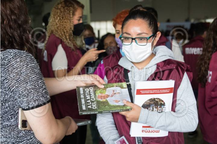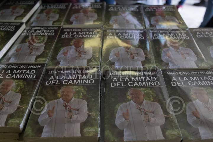 Ejemplares del libro de Andrés Manuel López Obrador "A la mitad del camino" que fueron regalados a los "Defensores de la 4T".