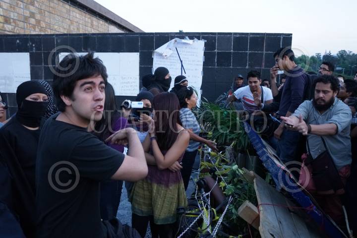 MÉXICO, D.F. 30ABRIL2013.- Alumnos,egresados y exalumnos de distitntas carreras del CCH y de la UNAM se reúnen a las afueras de las instalaciones de rectoría, tomadas por los encapuchados, esto para establecer un dialogo y llegar a un acuerdo para que se desaloje la dirección general de la rectoría de Cuidad Universitaria. FOTO:ALEJANDRO NEYRA /CUARTOSCURO.COM