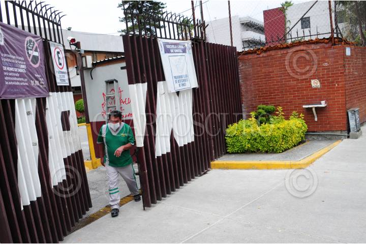 Un trabajador del CECyT 13 "Ricardo Flores Magón" del Instituto Politécnico Nacional, sale de las instalaciones del plantel. En días pasados fue tomado por grupos de jóvenes acusando a autoridades de violencia de género.