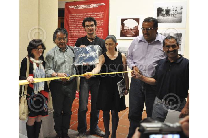 ZACATECAS, ZACATECAS, 15JUNIO2014.- La noche de ayer y con la presencia de Pedro Valtierra, fotoperiodista y director de la Agencia y Editora Cuartoscuro, lamaestra Lourdes Corzo, Sergio Mayorga, subdirector de la Fototeca de Zacatecas, Manuel Meza, director de la Ciuddela del Arte y Jaime Robledo, historiador y responsable de area documental de la fototeca, se inauguró la exposición "A cien años de la toma de Zacatecas. Fotografía y Revolución 1913-1914", como parte de los festejos por el centenrio de la Toma de Zacatecas, en el que la llamada División del Norte al mano de Francisco Villa,derrota al Ejército Federal de Victoriano Huerta. FOTO: CARLOS SEGURA /CUARTOSCURO.COM