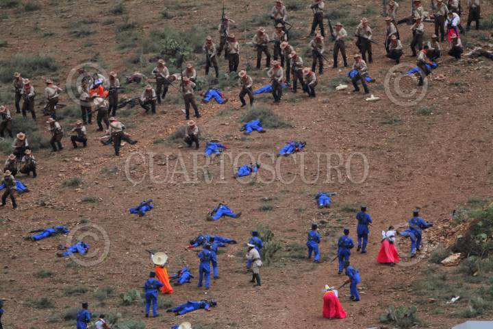 ZACATECAS, ZACATECAS, 23JUNIO2014.- Representación por elementos del Ejército Mexicano de la Toma de Zacatecas, como parte de los festejos por el centenario en la cual la División del Norte al mando de Francisco Villa, Felipe Angeles y Pánfilo Natera, derrotó al ejército federal en la batalla que fue a la postre la derrota de Victoriano Huerta y el triunfo de la Revolución. FOTO: ADOLFO VLADIMIR /CUARTOSCURO.COM