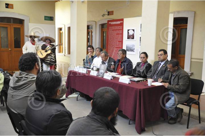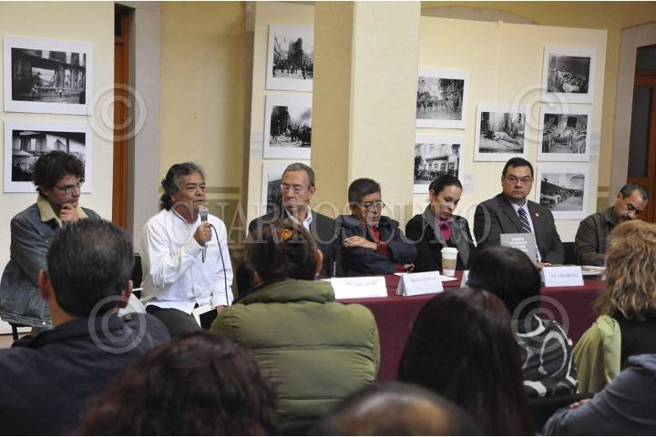 ZACATECAS, ZACATECAS, 13JULIO2014.- La tarde de ayer fue presentado el libro "Episodios fotográficos de la Toma de Zacatecas, 1913-1914" que aborda como temática principal la fotografía tomada durante la Revolución Mexicana, un aspecto poco investigado en los estudios recientes sobre el conflicto armado en la entidad. La investigación, selección y catalogación de las imágenes, así como la redacción del texto fue realizada por Jaime Robledo Martínez, investigador encargado del centro de Documentación de la Fototeca de Zacatecas. La presentación fue realizada por Sergio Mayorga, subdirector de la Fototeca de Zacatecas, Pedro Valtierra, fotoperiodista y director de la Fototeca de Zacatecas, Gustavo Salinas Iñiguez, director del Instituto Zacatecano de Cultura, la Dra. Lidia Medina, profesora especializada en historia del arte de la Universidad Autonóma de Zacatecas (UAZ); el Dr. José Enciso Contreras, ex cronista de la ciudad y profesor en el posgrado en historia en la UAZ, el maestro Luis Román, especialista en historia del siglo XIX y primera mitad del siglo XX adscrito a la Unidad de Historia de la UAZ. FOTO: CARLOS SEGURA /CUARTOSCURO.COM