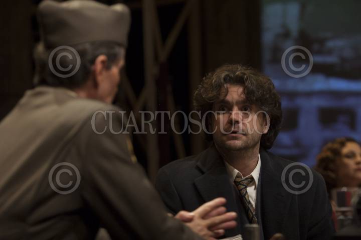 MÉXICO, D.F., 09OCTUBRE2012.- El actor, rafael Sanchez Navarro es Wilhem Furtwängler un judio director de orquesta que no huyó de alemania y es enjuiciado al final de la guerra por el actor Humberto Zurita que interpreta al mayor Steve Arnold, miembro del ejército norteamericano que lleva el juicio por colaborar con el nazismo en la obra "Tomar Partido" de Ronald Harwood, la obra se estrena el 12 de Octubre en el Foro Cultural Chapultepec a las 20:30 hrs. Actuan tambien, Stefanie Weiss, Sergio Bonilla, Marina de TAvira y Martin Altomaro. FOTO: FRANCISCO RODRÍGUEZ /CUARTOSCURO.COM