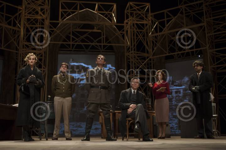 MÉXICO, D.F., 12ENERO2013.- Los Actores, Humberto Zurita, Rafael Sánchez Navarro, Marina de Tavira, Stefanie Weiss, Sergio Bonilla y Martín Altomaro protagonizan "Tomar Partido" escrito por el sudafricano Ronald Harwood y que se presenta en el Centro Cultural Chapultepec donde anoche los dos primeros recibieron por parte de la Asociación de Criticos de Teatro, una estatuilla en reconocimiento a su labor. FOTO: FRANCISCO RODRÍGUEZ / CUARTOSCURO.COM