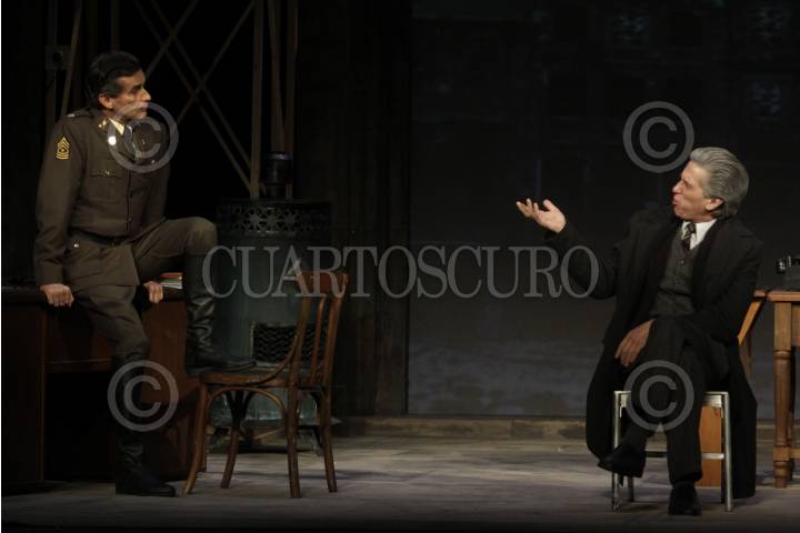 MÉXICO, D.F., 09OCTUBRE2012.- El actor, rafael Sanchez Navarro es Wilhem Furtwängler un judio director de orquesta que no huyó de alemania y es enjuiciado al final de la guerra por el actor Humberto Zurita que interpreta al mayor Steve Arnold, miembro del ejército norteamericano que lleva el juicio por colaborar con el nazismo en la obra "Tomar Partido" de Ronald Harwood, la obra se estrena el 12 de Octubre en el Foro Cultural Chapultepec a las 20:30 hrs. FOTO: FRANCISCO RODRÍGUEZ /CUARTOSCURO.COM