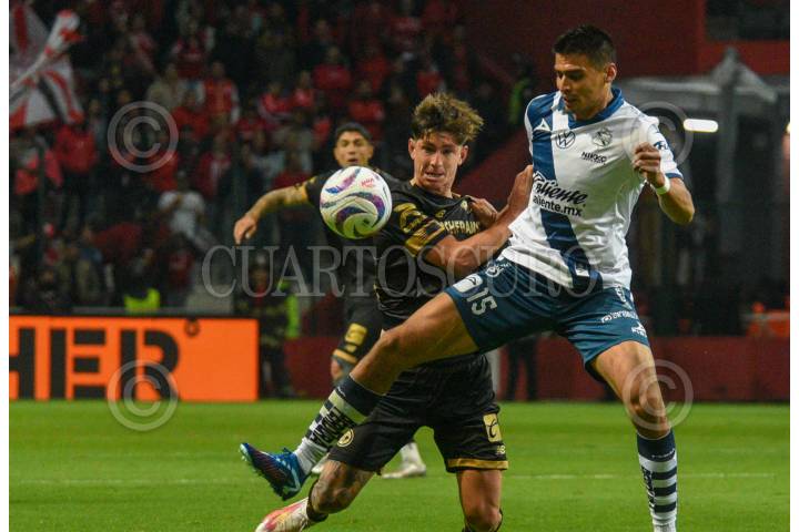 TOLUCA, ESTADO DE MÉXICO, 31OCTUBRE2023.- Guillermo Martínez delantero de la Franja de Puebla y Tomás Belmonte medio de los Diablos de Toluca en el partido correspondiente a la jornada 15 del Torneo Apertura 2023 de la Liga MX con un marcador final 0-1.- FOTO: CRISANTA ESPINOSA AGUILAR /CUARTOSCURO.COM