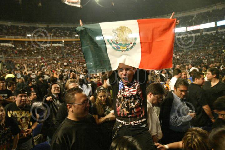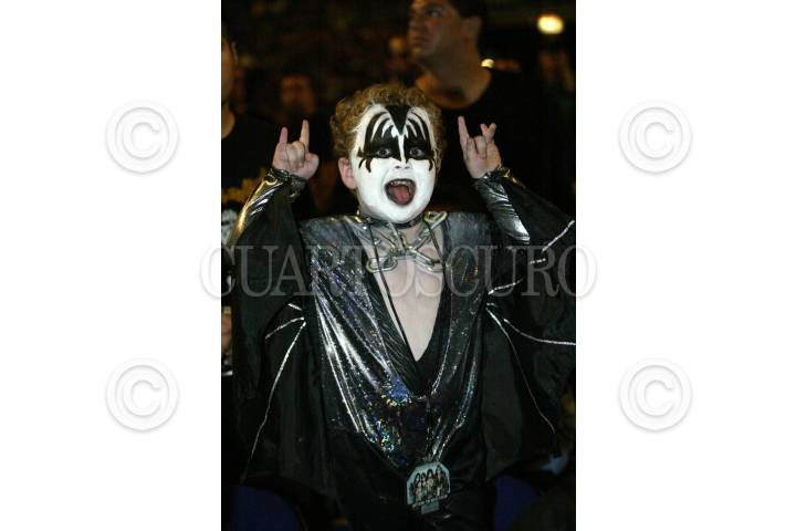 México, D.F. 18 AGOSTO 2004.- Un niño grita en el Palacio de los Deportes durante el concierto del grupo estadounidense, Kiss, el cuarteto integrado por Paul Stanley, Gene Simmons, Eric Singer y Tommy Thayer. FOTO: Rita Canto/CUARTOSCURO.COM