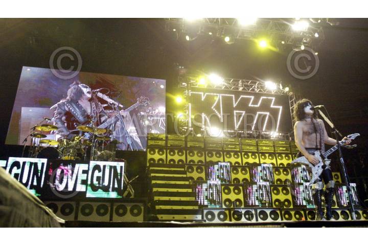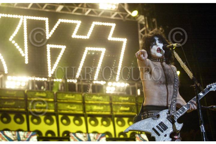 México, D.F. 18 AGOSTO 2004.- El cuarteto estadounidense, Kiss, integrado por Paul Stanley, Gene Simmons, Eric Singer y Tommy Thayer actúan durante su concierto en el Palacio de los Deportes el cual forma parte de una producción hecha en México, como parte del un video. FOTO: Rita Canto/CUARTOSCURO.COM