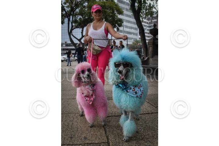 CIUDAD DE MÉXICO, 03DICIEMBRE2023.- Una mujer pasea a sus perritos de nombre "Barbie" y "Tommy" sobre avenida Paseo de la Reforma. FOTO: MARIO JASSO/CUARTOSCURO.COM