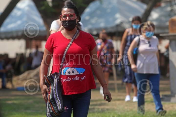 Mujeres embarazadas salen del modulo del Museo del Ejercito, después de aplicarse la vacuna contra el Covid-19.