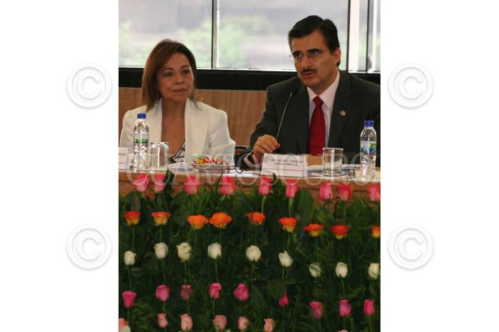 MÉXICO, D.F., 11DICIEMBRE2006.- Arnaldo Ochoa, Josefina Vazquez Mota, Secretaría de Educación Pública y Tonatiuh Bravo, presidente de la comisión de educación de la Cámara de Diputados, durante una reunión con rectores de varias universidades del pais en la sede de la SEP. FOTO: MOISÉS PABLO/CUARTOSCURO.COM