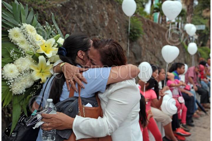 CUERNAVACA, MORELOS, 01JUNO2017.- Familiares y amigos del Tonatiuh Tlapanco, joven morelense secuestrado en el Estado de México en octubre pasado, marchan detrás de la carroza que traslado sus restos. El joven fue secuestrado presuntamente, según su padre, por empleados del Tribunal Superior de Justicia de Morelos que están en activo. FOTO: MARGARITO PÉREZ RETANA /CUARTOSCURO.COM