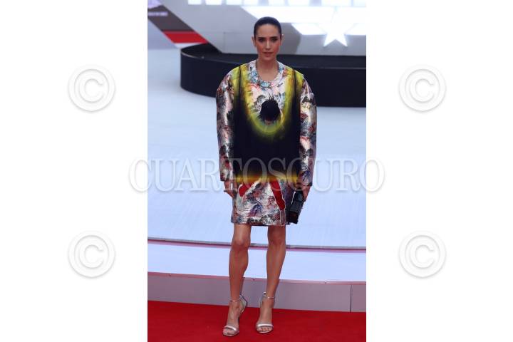 La actriz Jennifer Connelly durante la alfombra roja por el estreno de la película “Top Gun Maverick” en Parque Toreo.