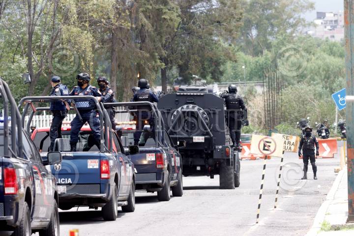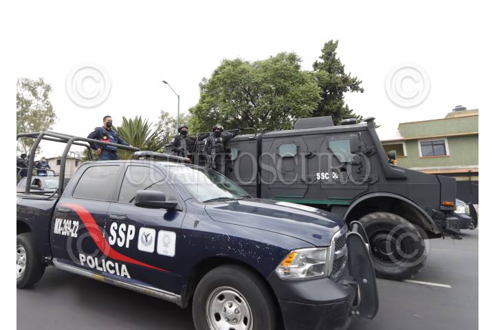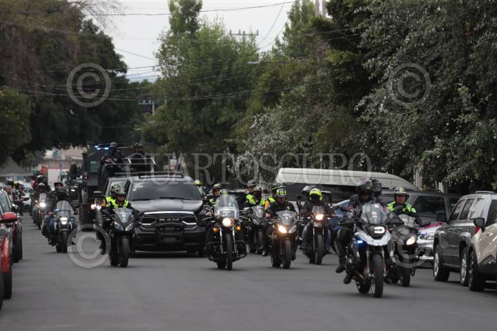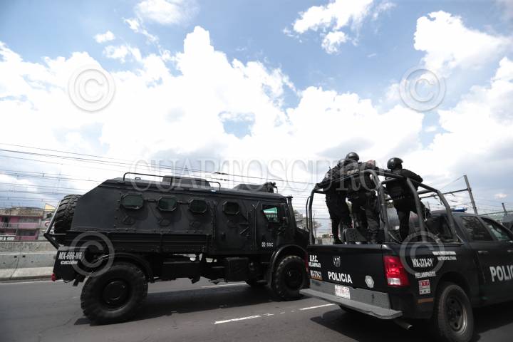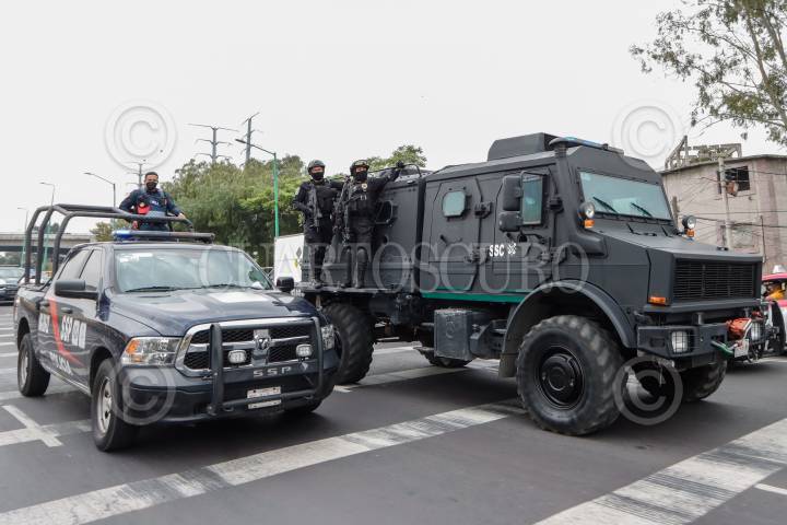 Convoy de la Secretaría de Seguridad Ciudadana (SSC) en la que se realizó el traslado de los detenidos en Topilejo al Reclusorio Norte, quienes se presentarán en su primera audiencia ante un juez.