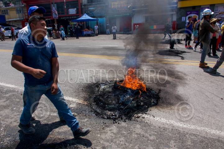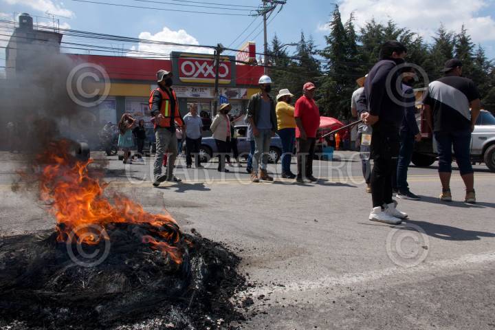 Protesta de habitantes de Topilejo y Huitzilac en exigencia de la liberación de personas detenidas durante los operativos contra la tala ilegal en la alcaldía Tlalpan.