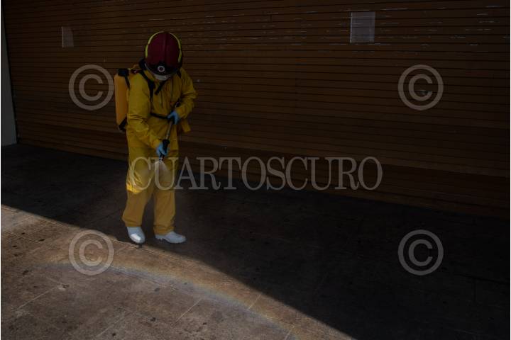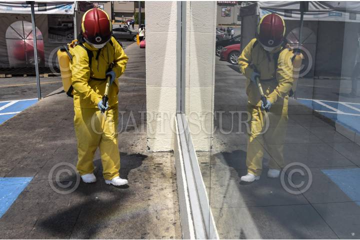 Elementos de Protección Civil, realizaron proceso de sanitización en los alrededores de una plaza comercial ubicada en el toreo, ésto ante laemergencia sanitaria Fase 2 por la pandemia de coronavirus (Covid-19) que se vive en el país.