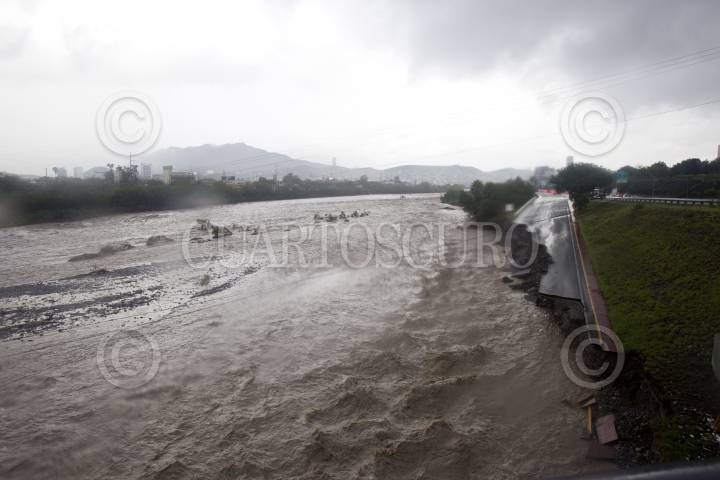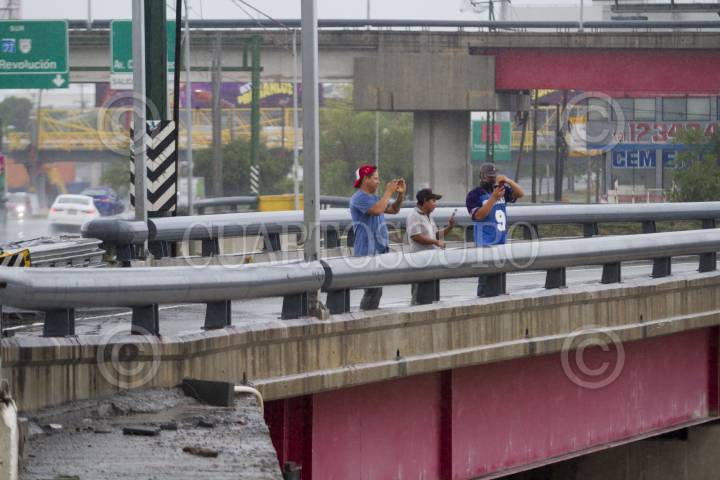 MONTERREY, NUEVO LEÓN, 21JUNIO2024.- Ante el paso de la Tormenta Tropical "Alberto", se han producido diversos desgajamientos en la avenida Constitución debido a la creciente del Río Santa Catarina. Las lluvias continuarán de forma intermitente hasta el día sábado en el área metropolitana de Monterrey. FOTO: GABRIELA PÉREZ MONTIEL / CUARTOSCURO.COM