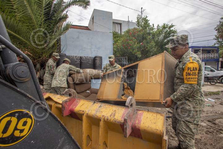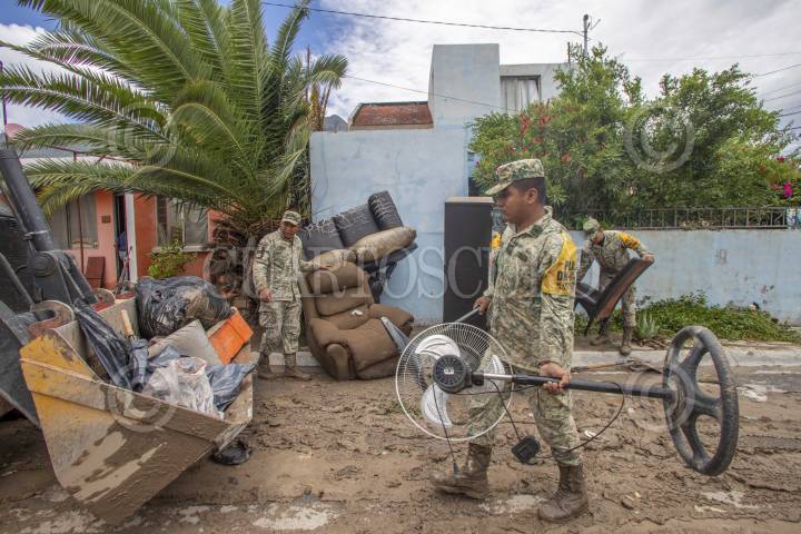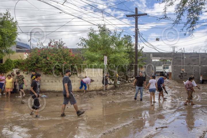SANTA CATARINA, NUEVO LEÓN, 21JUNIO2024.- Elementos de la SEDENA, activan el Plan DN-III y ayudan a retirar lodo, de al menos 30 viviendas de la colonia El Escorial al poniente de la zona metropolitana de Monterrey, tras el paso de la Tormenta Tropical "Alberto". FOTO: GABRIELA PÉREZ MONTIEL / CUARTOSCURO.COM