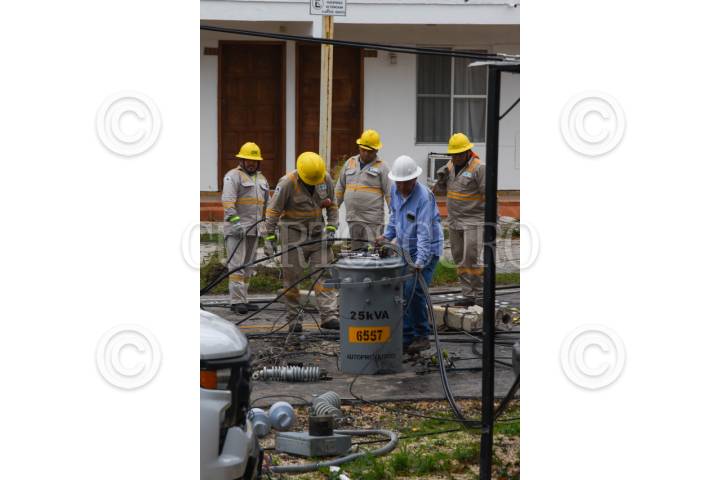 CAMPECHE, CAMPECHE, 19JUNIO2025.- Elementos de seguridad y trabajadores de servicios públicos acudieron a la calle Lazareto del fraccionamiento Montecristo, en Campeche, para atender la caída de postes eléctricos provocada por una turbonada. FOTO: MICHAEL BALAM/CUARTOSCURO.COM