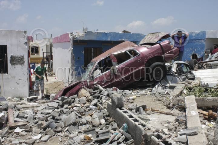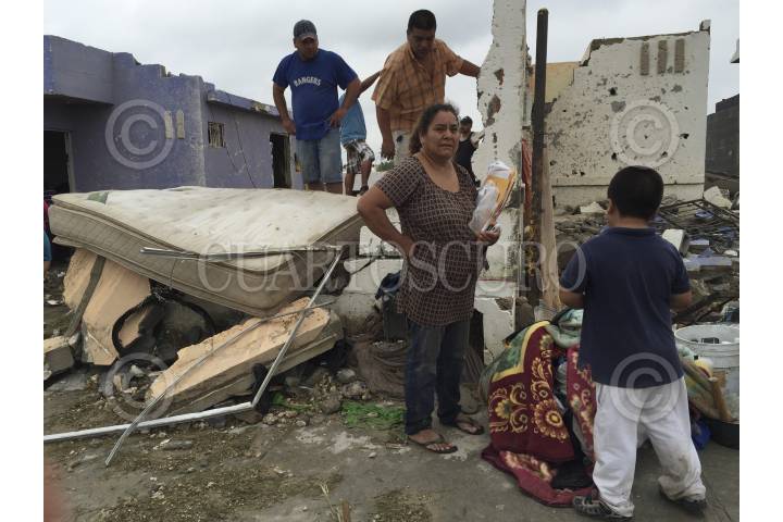CIUDAD ACUÑA, COAHUILA, 25MAYO2015.- Diez personas perdieron la vida y cientos resultaron damnificadas tras el paso de un tornado que azotó la mañana de hoy Ciudad Acuña, autoridades de protección civil apoyan a los habitantes y verifican los daños en las viviendas, personal del ejercito mexicano implemento el plan DN-lll en la zona afectada. FOTO: NICOLE GAXIOLA /CUARTOSCURO.COM