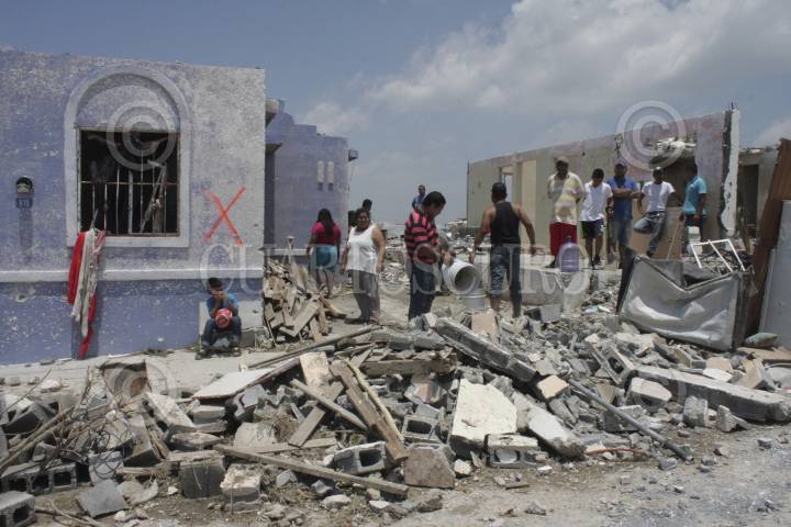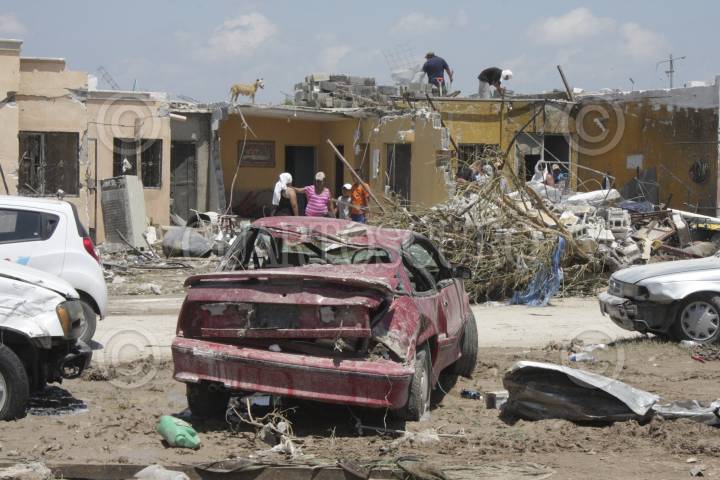 CIUDAD ACUÑA, COAHUILA, 25MAYO2015.- Diez personas perdieron la vida y cientos resultaron damnificadas tras el paso de un tornado que azotó la mañana de hoy Ciudad Acuña, autoridades de protección civil apoyan a los habitantes y verifican los daños en las viviendas, personal del ejercito mexicano implemento el plan DN-lll en la zona afectada. FOTO: PACO MARTÍNEZ /PERIODICOLAVOZ.COM.MX /CUARTOSCURO.COM