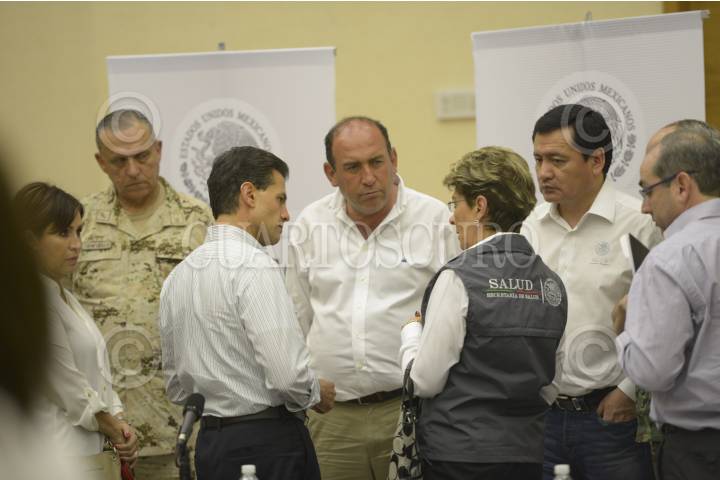 CIUDAD ACUÑA, COHAHUILA, 26MAYO2015.- El Presidente Enrique Peña Nieto sobrevoló esta ciudad para observar los daños que dejó el tornado que se registró la madrugada de este lunes y, luego, durante un recorrido por las colonias más afectadas, dialogó con las familias, a quienes les expresó su solidaridad y les ofreció “que tengan la tranquilidad de que no están solos, que aquí está el Gobierno de la República, está el Gobierno del Estado y estamos trabajando por ustedes”. FOTO: PRESIDENCIA /CUARTOSCURO.COM