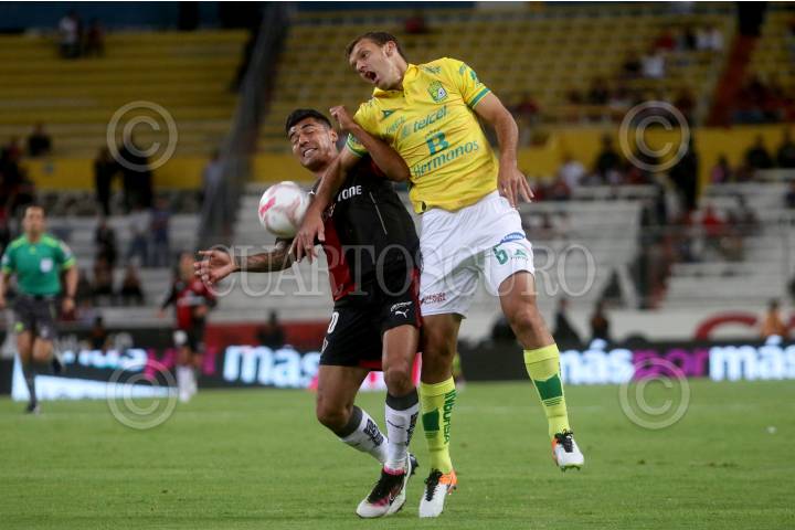 GUADALAJARA, JALISCO. 23ABRIL2016.- Jefersson Duque jugador de Atlas disputa un balón a Diego Novaretti de León en partido correspondiente a la Jornada 15 del Torneo Clausura 2016 de la Liga MX, en donde se enfrentan los Zorros del Atlas frente a los Panzas Verdes de León en encuentro que se lleva a cabo en el Estadio Jalisco. FOTO : FERNANDO CARRANZA GARCIA / CUARTOSCURO.COM