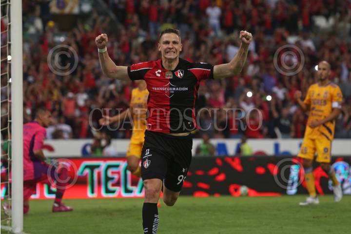 Julio Furch jugador de Atlas celebra su anotación, esto en partido correspondiente a la Semifinal del Torneo Grita México Clausura 2022 de la Liga MX, entre Atlas y Tigres.