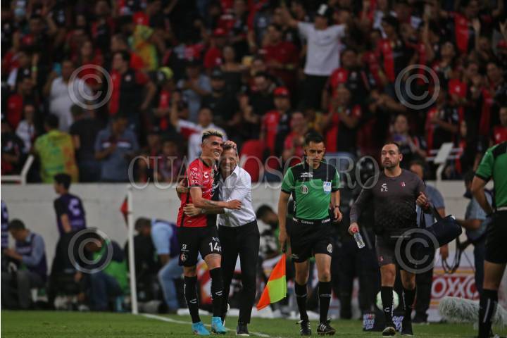 Luis Reyes jugador de Atlas celebra su anotación con su estratega, Diego Cocca, esto en partido correspondiente a la Final del Torneo Grita México Clausura 2022 de la Liga MX, entre Atlas y Pachuca.
