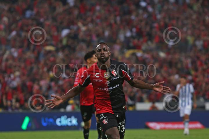 Julián Quiñonez jugador de Atlas celebra su anotación, esto en partido correspondiente a la Final del Torneo Grita México Clausura 2022 de la Liga MX, entre Atlas y Pachuca.
