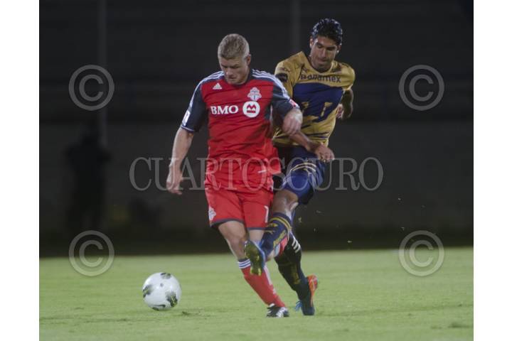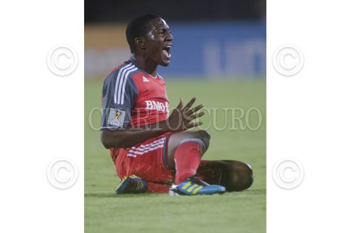 MÉXICO, D.F., 14SEPTIEMBRE2011.- Borman del Toronto FC, se lamenta una acción durante el partido contra los Pumas de la UNAM, correspondiente a la fase de grupos de la Concachampions 2011. Ésto se realizó en el estadio de Olímpico de Ciudad Universitaria. FOTO: MISAEL VALTIERRA/CUARTOSCURO.COM
