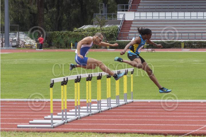 MEXICO, D.F., 16AGOSTO2014.- El día de hoy concluyó el Festival Panamericano, en el cual se contemplaron 23 disciplinas, de las cuales 13 fueron clasificatorias para los Juegos Panamericanos de Toronto, a celebrarse este próximo 2015. En la imagen, Jeffery Gibson, de Bahamas, y Andrés B. Silva, de Uruguay, en la prueba de los 400 metros con vallas. FOTO: DAVID POLO /CUARTOSCURO.COM