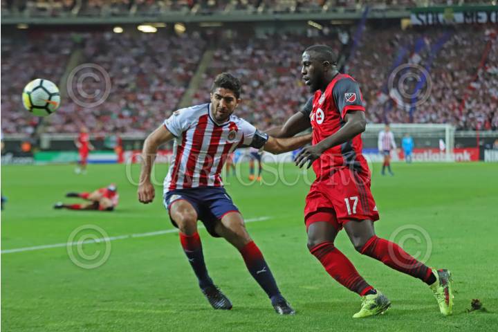 ZAPOPAN, JALISCO, 25ABRIL2018.- Las Chivas de Guadalajara (México) se enfrentan a Toronto (CANADA) en el Estadio Akron y en partido correspondiente a la final de vuelta de la Liga de Campeones de la Concacaf. El marcador al momento del juego es de 2-1 a favor del equipo de visitante marcador global 3-3. FOTO: CUARTOSCURO.COM