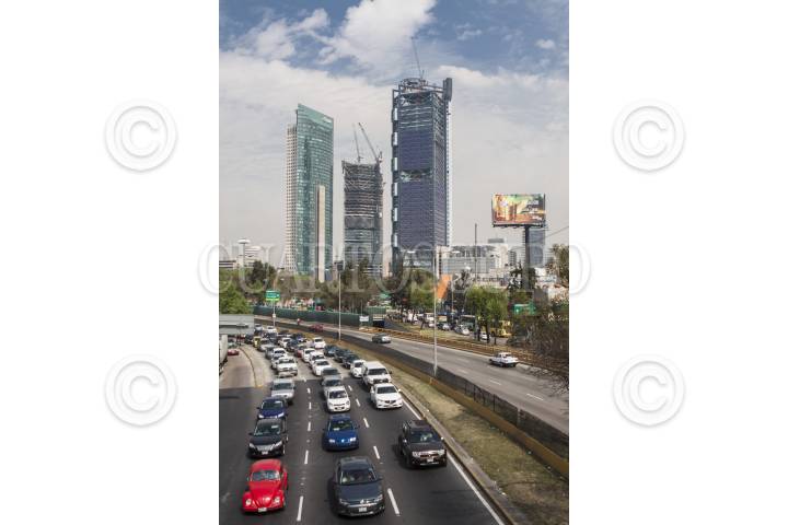 MÉXICO, D.F., 09ENERO2015.- Sobre el Circuito Interior se observan las tres torres; Torre Mayor, Torre Reforma y la Torre BBVA Bancomer, éstas dos últimas en construcción. Estas grandes construcciones le han venido dar un aspecto diferente a este cruce de Reforma, entre éstos gigantes se encuentra la Estela de Luz. FOTO: MOISÉS PABLO /CUARTOSCURO.COM