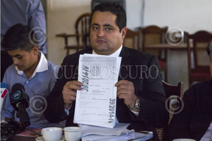 MÉXICO, D.F., 30ENERO2014.- Jesús Alberto Guerrero, Abogado de dos de los familiares de las personas que perdieron la vida en la explosión en el edificio de PEMEX hace un años, ofreció una conferencia ante los medios de comunicación, para dar los pormenores en la situación jurídica en la que se encuentra el juicio de amparo. FOTO: ENRIQUE ORDÓÑEZ /CUARTOSCURO.COM