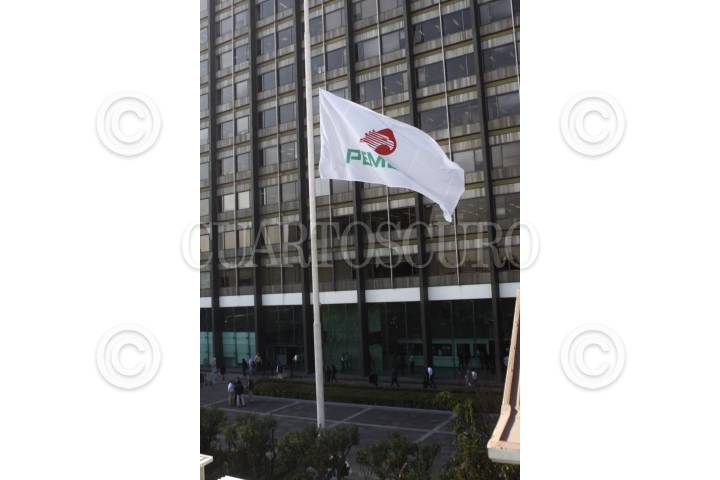 MÉXICO, D.F., 31ENERO2014.- Se cumple un año de la explosión en la Torre B de Petroleos Mexicanos (PEMEX) la cual dejo un saldo de 37 personas fallecidas, familiares de algunas de las víctimas acudieron a cantarles en un improvisado altar colocado en una de las ceras que circundan el edifico de la paraestatal. Autoridades comentaron que el director de esta empresa Emilio Lozoya dedico cinco minutos de su tiempo a un homenaje en punto de las siete, ya que tenía un compromiso. En el patio central se observó una bandera de PEMEX a media asta. FOTO: MOISÉS PABLO /CUARTOSCURO.COM