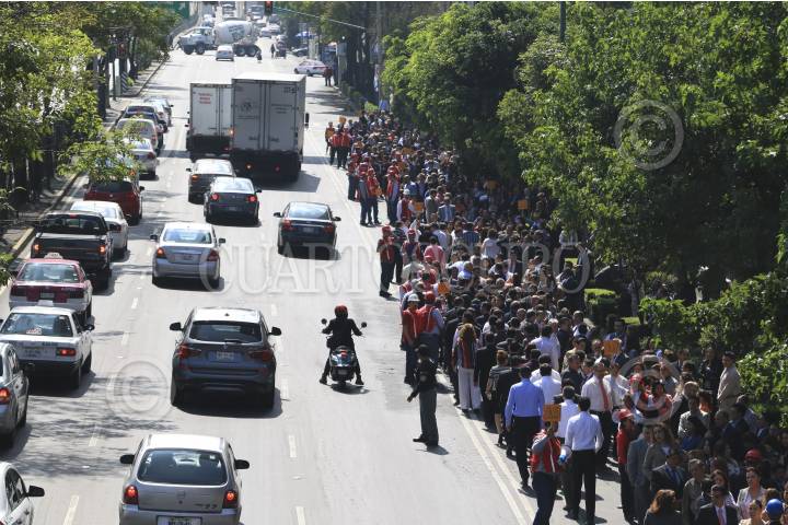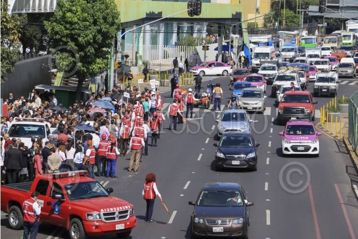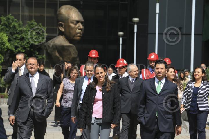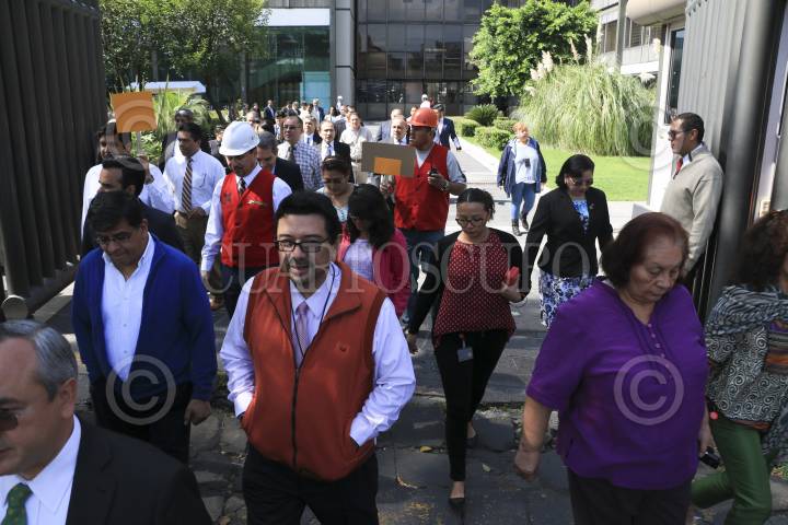 CIUDAD DE MÉXICO, 19SEPTIEMBRE2016.- Trabajadores de la Torre de PEMEX participaron en el macrosimulacro que se realizó para poner en práctica la evacuación de sus instalaciones y conmemorar a las victimas del terremoto de 1985. FOTO: SAÚL LÓPEZ /CUARTOSCURO.COM