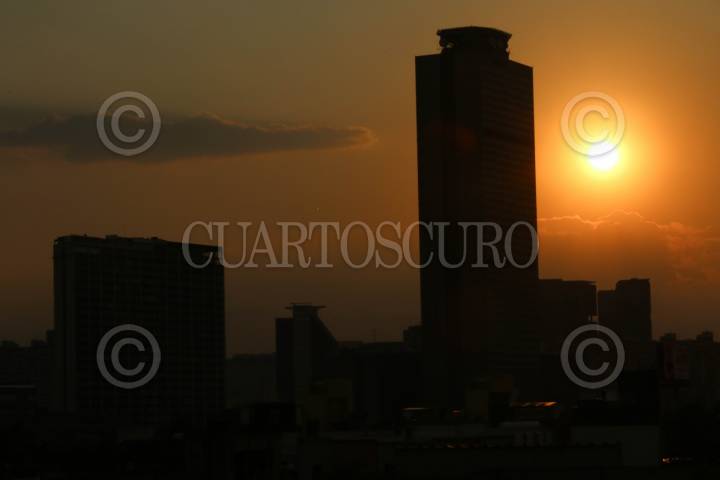 CIUDAD DE MÉXICO, 21ABRIL2024.- Tarde de contraste en la capital en dónde por momentos hubo lluvia, arcoiris y un espectacular atardecer. En la imagen se observa la silueta de la Torre de Pemex. FOTO: MOISÉS PABLO/CUARTOSCURO.COM