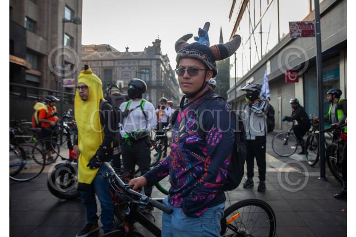 CIUDAD DE MÉXICO, 04MAYO2025.- Como parte de la meta rodada donde de distintas ciudades salen grupos ciclistas, deportistas salieron en punto de las 7 de la mañana de la torre latinoamericana. Aprovechando el día de la saga Starwars algunos ciclistas vistieron o customizaron sus bicicletas con la temática. FOTO: ANDREA MURCIA /CUARTOSCURO.COM