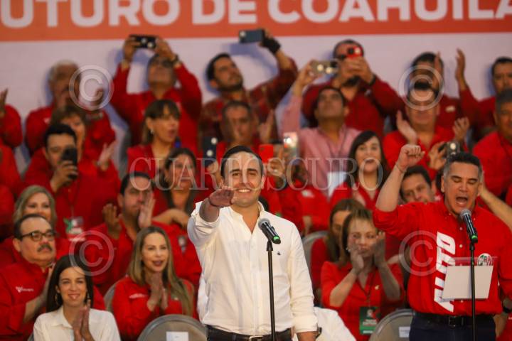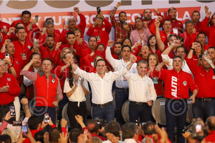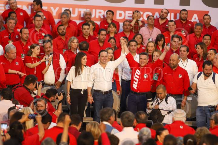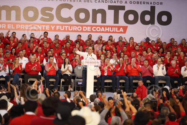 Manolo Jiménez Salinas, tomó protesta como candidato a la gobernatura del estado de Coahuila ante dos mil personas en el municipio de Torreon, donde acudió a tomarle la protesta el dirigente nacional del PRI, Alejandro Moreno.