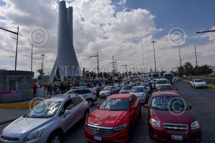 Integrantes de la CNTE de Michoacán, Jalisco y el Estado de México en su paso por la ciudad de Toluca como parte de la Caravana por la Estabilidad Laboral y Salarial que tiene como destino la CDMX.