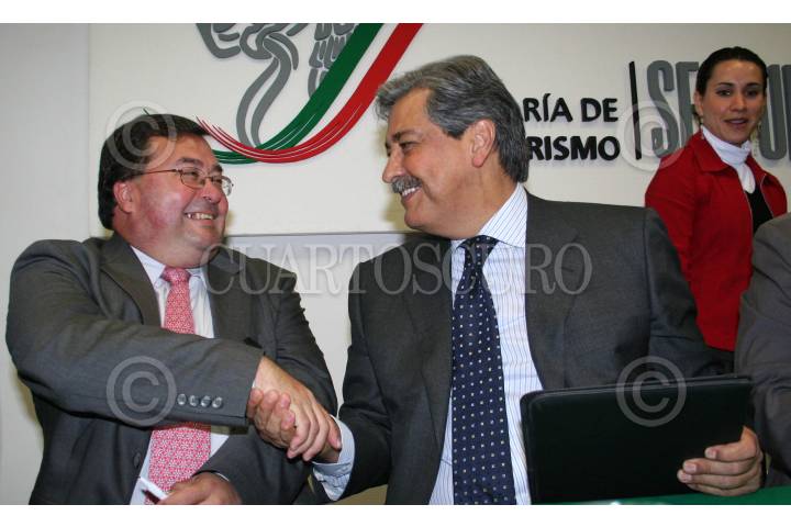 MÈXICO, D.F. 11JULIO2006.- El secretario de Turismo, Rodolfo Elizondo Torres, secretario de turismo se reuniò con representantes de la zona Maya, Ricardo Martinez, ministro de turismo de Honduras, Daniel Mooney, director del instututo de turismo de Guatemala, con el objetivo de activar estas zonas turìsticas. FOTO: Paola Hidalgo/CUARTOSCURO.COM